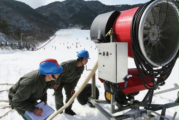 2月8日正月初一,前往九宫山滑雪场的游客日益增多,国网咸宁供电公司九宫山供电所员工放弃休息,仍坚持在九宫山滑雪场检查用电设备。(詹文峰 谌胜蓝 摄)