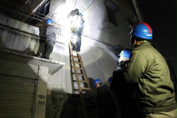 2月7日,农历除夕夜,当人们正沉浸在迎新春抢红包的幸福时刻时,国网麻城市供电公司应急抢修队队员快速出动,成功处理台湾街市委小区居民停电故障,保障了城区居民除夕夜正常用电。(彭锐 姚苏文 摄)