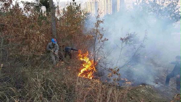 2月10日,大年初三,黄石西塞山区石磊山村发生山火,国网黄石供电公司员工迅速出动,保证了磁永线等三条输电线路安全运行。(邹慈 摄)
