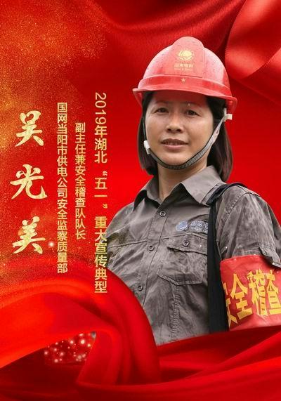 吴光美,湖北当阳市供电公司安全监察质量部副主任,她三十年如一日,开展现场稽查上万次,发现各类安全隐患800余处,无数次化险为夷,用责任与担当守护着电网安全。